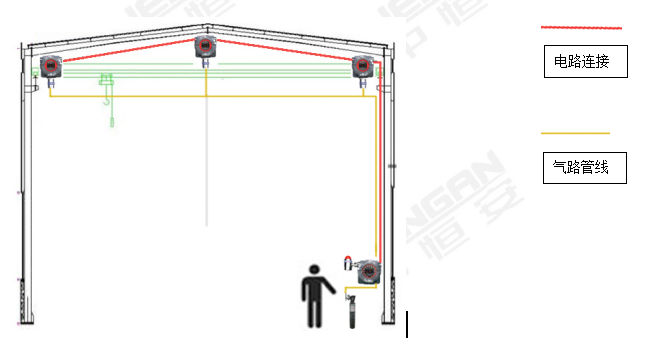配有HA8108防爆型可燃有毒氣體控制器的氣體監(jiān)控系統(tǒng)的維護(hù)示意圖
