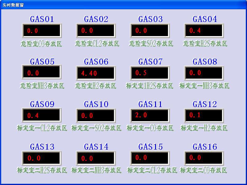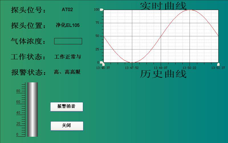 操作人員可以通過(guò)工控機(jī)的觸摸屏、操作員站和工程師站等人機(jī)交互界面,實(shí)時(shí)監(jiān)視廠區(qū)內(nèi)所有檢測(cè)點(diǎn)的情況,主要有氣體濃度值,報(bào)警上限,實(shí)時(shí)曲線和歷史數(shù)據(jù)等。當(dāng)發(fā)生報(bào)警時(shí)也可以通過(guò)工控機(jī)進(jìn)行消音和報(bào)警響應(yīng)。