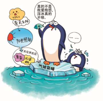 人為活動排放的二氧化碳、甲烷等多種溫室氣體以及氣溶膠可以改變大氣輻射收支,引起氣候變化。大多數(shù)VOCs并不能顯著地直接改變輻射收支。但是,VOCs和氮氧化物等在紫外光照的作用下,會發(fā)生一系列光化學反應(yīng),生成臭氧、二次氣溶膠等污染物,引起對流層臭氧和氣溶膠增加。對流層臭氧是一種具有溫室效應(yīng)的氣體,可引起氣候變暖。VOCs參與形成的氣溶膠作為全球氣溶膠的一部分,也具有直接的輻射效應(yīng),并且還可以通過影響云的形成、液滴尺寸及滯留時間,從而間接地影響氣候,其總的效果是起降溫作用。由此可見,VOCs的長期變化是可以間接地引起氣候變化的。
