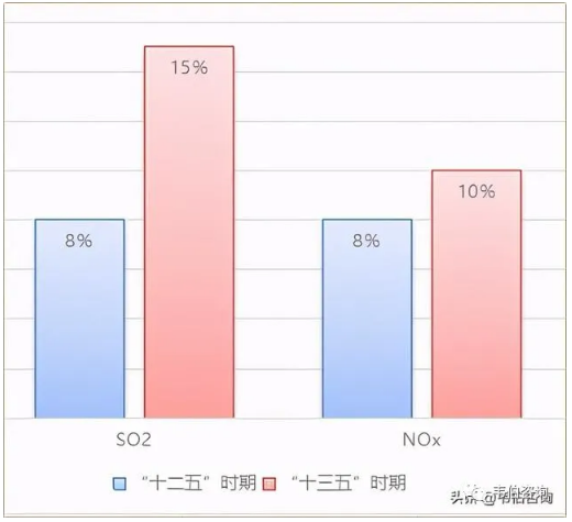 圖表 3:“十二五”和“十三五”時期SO2、NOx減排目標(biāo)對比