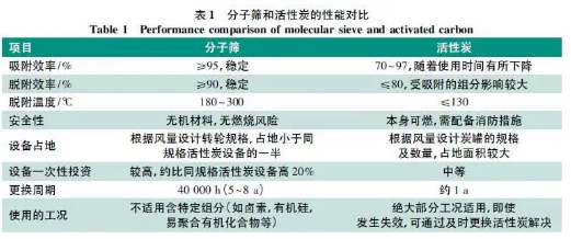 表1 為分子篩和活性炭的性能對(duì)比。