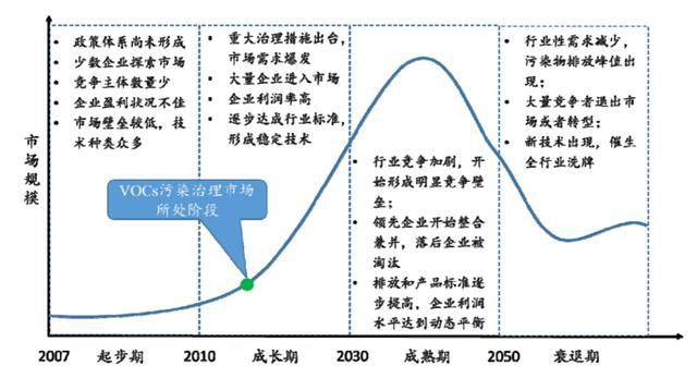 圖表1:VOCs治理行業(yè)生命周期及發(fā)展階段