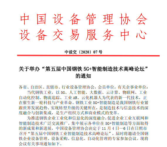 我司將于2020年11月4日-11月6日受邀參加在日照舉行的第五屆中國(guó)鋼鐵5G+智能制造技術(shù)高峰論壇。誠(chéng)摯邀請(qǐng)您的到來(lái)。