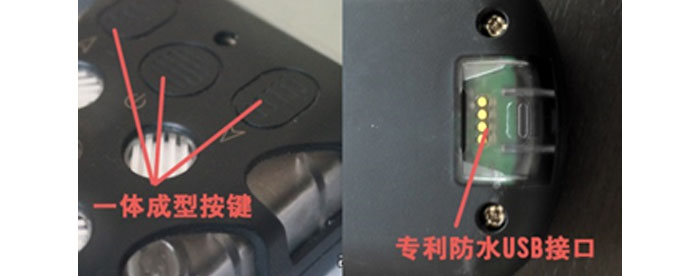 像上便攜式氣體檢測儀,按鍵與殼體為一體式設(shè)計,同時具有專利設(shè)計的充電口無裸露部分,杜絕進灰進水可能。