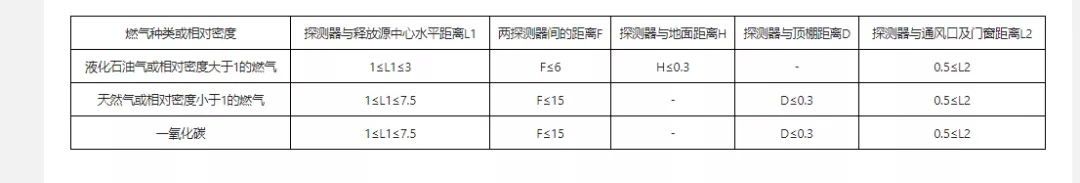 四、當燃氣輸配設(shè)施位于密閉或半密閉廠房內(nèi)時,應(yīng)每隔15m設(shè)置一個探測器,且探測器距任一釋放源的距離不應(yīng)大于4M。